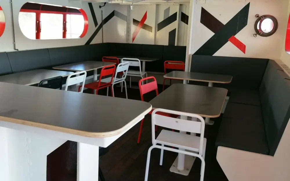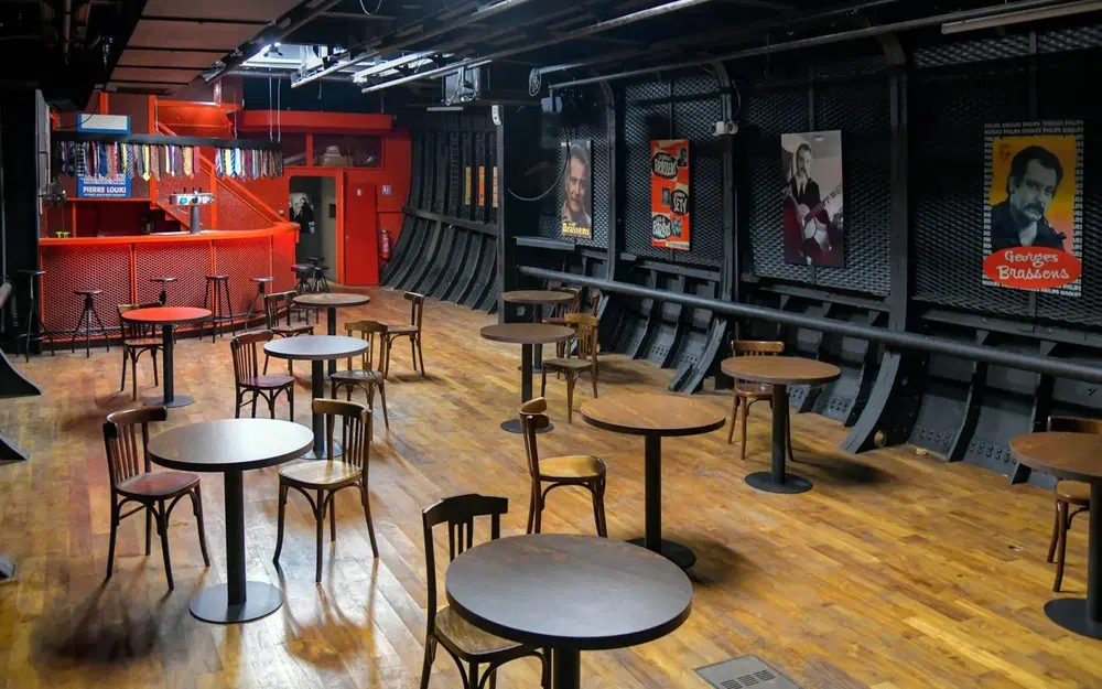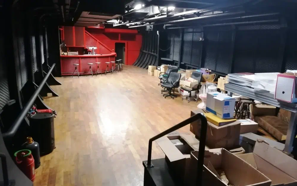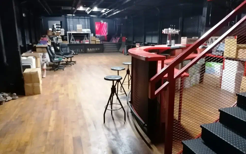 Pont inférieur salle de concert/expo 150 places debout, une grande scène et un bar,