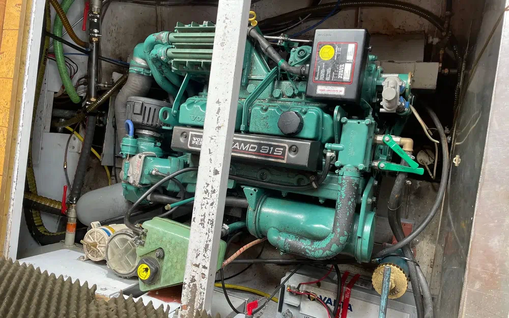 - Moteur VOLVO PENTA TAMD31S Diesel. Il comptabilise environ 1100H ; Puissance 100cv/74Kw Compartiment moteur au milieu du bateau