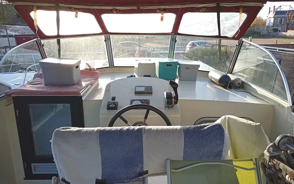 Tirant Air : 2,81m pare-brise baissé, 3.38m avec pare-brise, 3,82m avec taud, 5,23m avec mât (aluminium) et antenne.